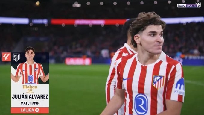 11月9日讯 马竞在本轮西甲3-1击败莱万特,西甲官方在赛后将没有直接加入 得分 的阿尔瓦雷斯评选为本场最有价值球员。