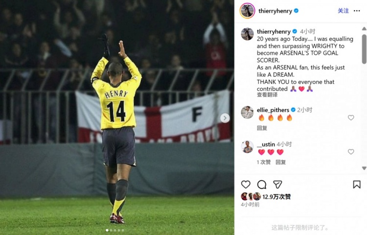 亨利配文写道:“20年前的今天,我先是追平,此后跨越 了赖特,_英超直播免费高清直播_英超直播在线高清(无插件)-24直播网成为阿森纳队史第一射手。作为一名枪手球运动 迷,这感觉就像做梦。感谢大家的付出。”