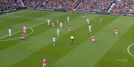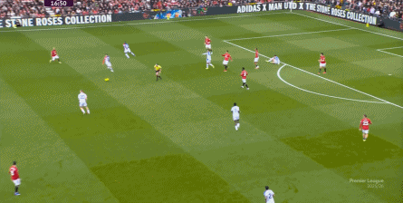 于是,下半场一回来,你就可以清晰感受到曼联的传跑速度明显加快: